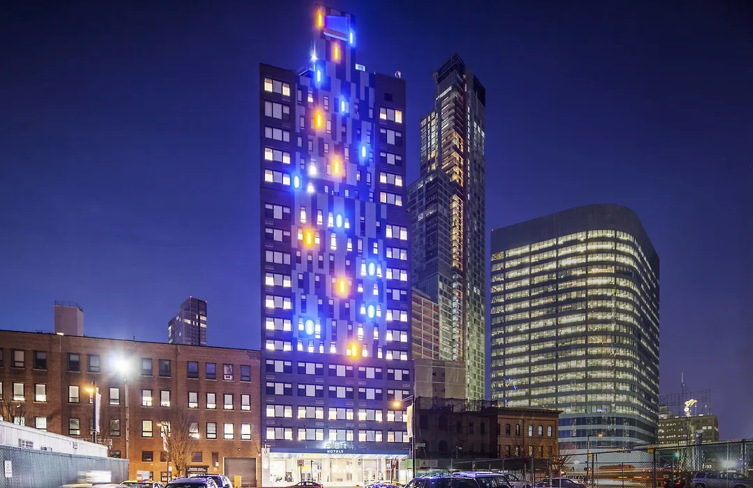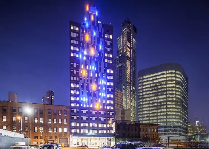 Aloft Long Island City-Manhattan View showcases a rooftop patio with skyline views, spacious suites, and an on-site bar. This 4-star New York hotel features free WiFi and easy access to both JFK and LGA Airports.