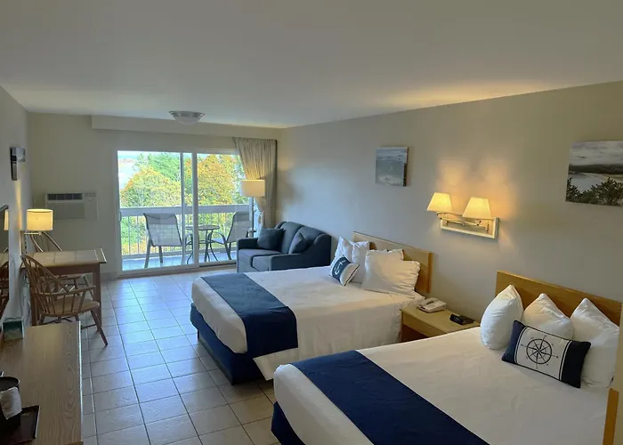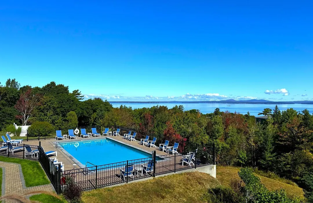 Atlantic Eyrie Lodge, a 2-star Bar Harbor hotel rated 8.7/10 on Booking.com, offers stunning panoramas of Frenchman Bay. Enjoy amenities such as an outdoor saltwater pool and complimentary hot breakfast.