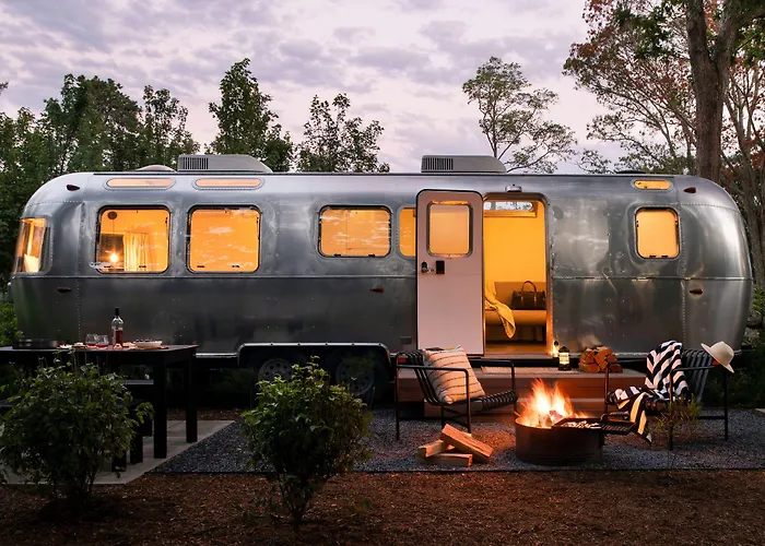 AutoCamp Catskills, a 3-star Saugerties hotel with an 8.8/10 rating, features unique accommodations including Airstreams and canvas tents. Guests benefit from amenities such as a farmhouse-style Clubhouse and a heated spa.