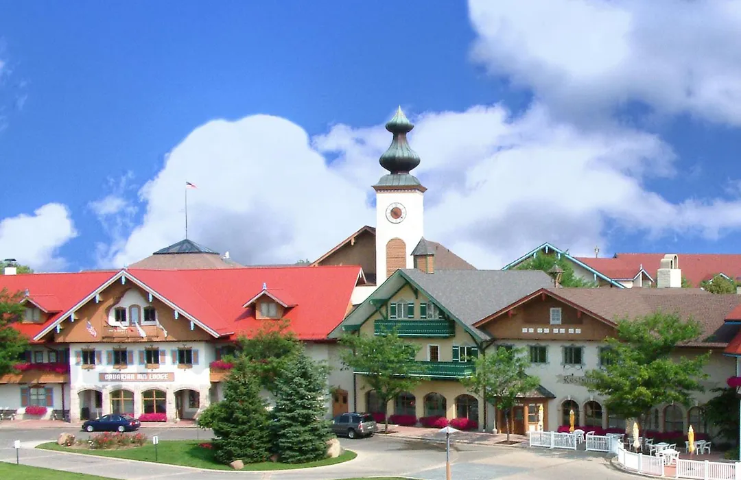 Leisure activities at Bavarian Inn Lodge include the Bavarian Blast Waterpark, which features multiple water slides and pools, as well as a massive gaming area with over 180 arcade games. The Family Fun Center contains indoor mini-golf, laser tag, and a three-story ropes course, ideal for family bonding.
