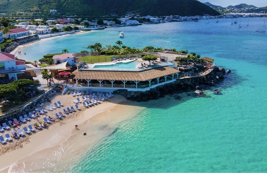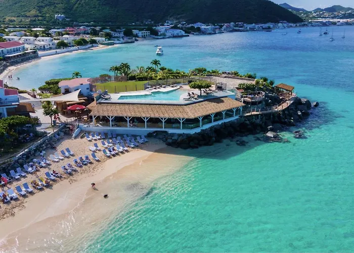 Grand Case Beach Club, a 4-star resort with a rating of 8.9/10 on Booking.com, offers breathtaking views of Anguilla and direct access to two private beaches. This intimate hotel features modern amenities, a complimentary massage service, and an on-site restaurant, The Sunset Café.