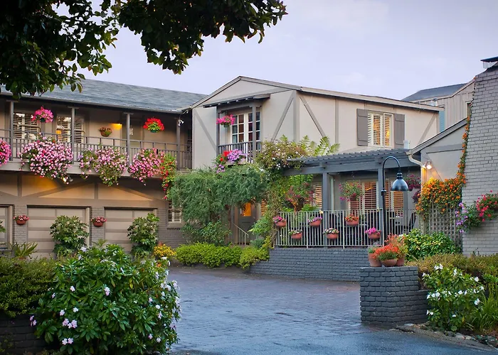 Carmel Country Inn, rated 8.8/10 on Booking.com, offers spacious one and two-bedroom suites as well as cozy romantic studios, all featuring fireplaces and luxury baths. This pet-friendly Carmel-by-the-Sea hotel provides amenities like free Wi-Fi, off-street parking with a Tesla charger, and afternoon refreshments.