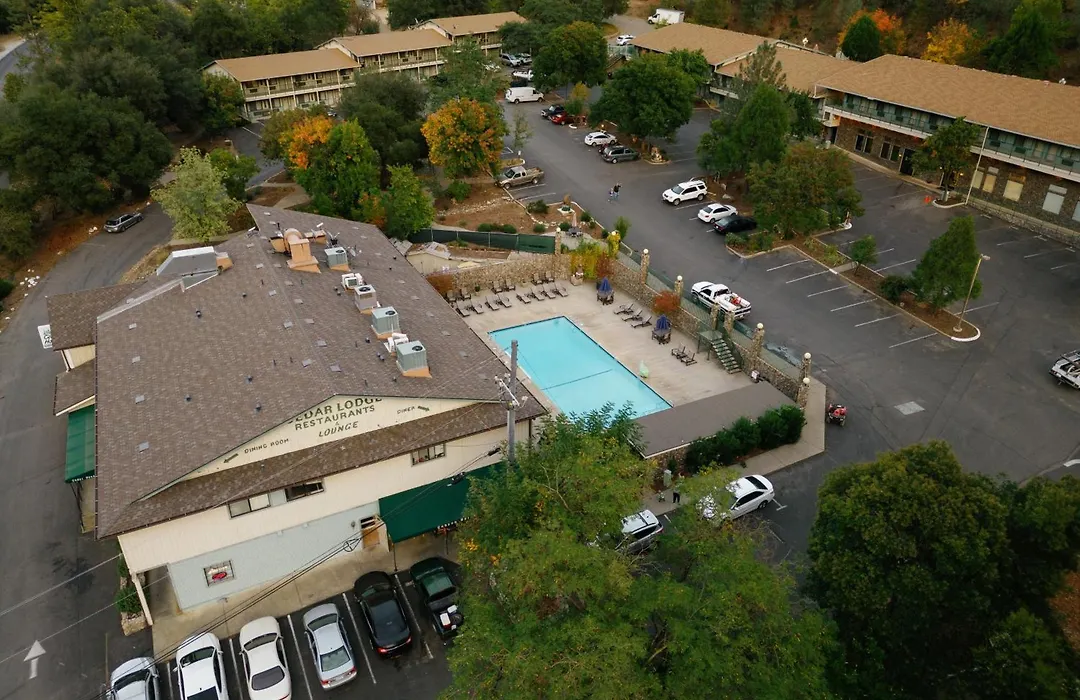 Cedar Lodge, a 2-star El Portal hotel rated 7.8/10 on Booking.com, features indoor and outdoor swimming pools, a private beach on the Merced River, and a family-friendly atmosphere. It offers easy access to Yosemite National Park, just a short drive away.