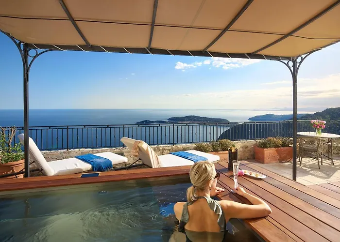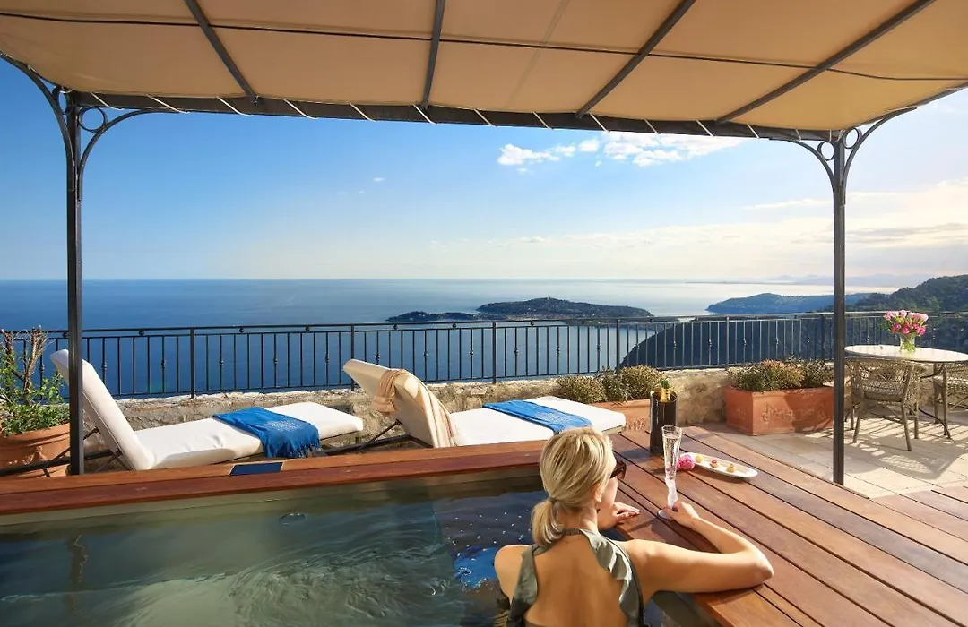 Chateau Eza offers breathtaking views of the Mediterranean Sea from its 14 unique rooms and suites. This 5-star Éze hotel features a fine-dining restaurant, a lounge bar, and an exquisite Wine Cave. Notably, it holds a Booking.com rating of 9.1/10.