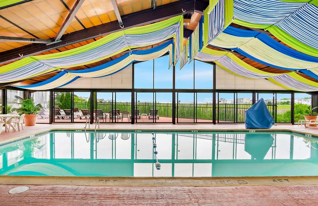 The hotel features leisure facilities, including a large indoor pool with a whirlpool. Guests can also enjoy the outdoor sun deck while taking in views of the surrounding marsh and bay.