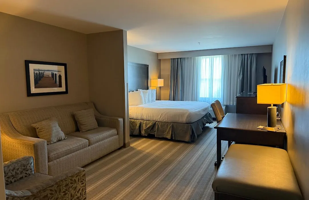 Dining options include The Tavern on South Shore, where guests can order meals to go, or explore nearby restaurants like Qdoba Mexican Grill just 0.5 miles away. The hotel also serves a complimentary breakfast each morning.