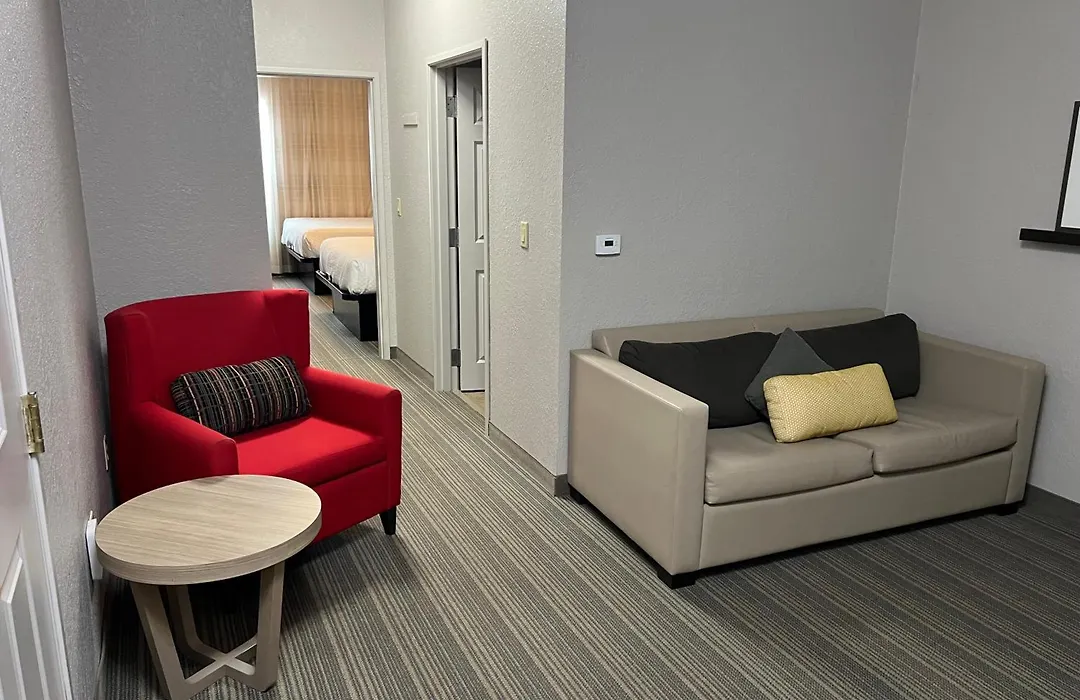 Stay comfortably in contemporary rooms at Country Inn, equipped with free Wi-Fi, a flat-screen TV, and coffee facilities. Guests can enjoy additional amenities like a fridge and microwave for convenience. The suite includes a separate living area with a sofa bed, perfect for larger groups or families.