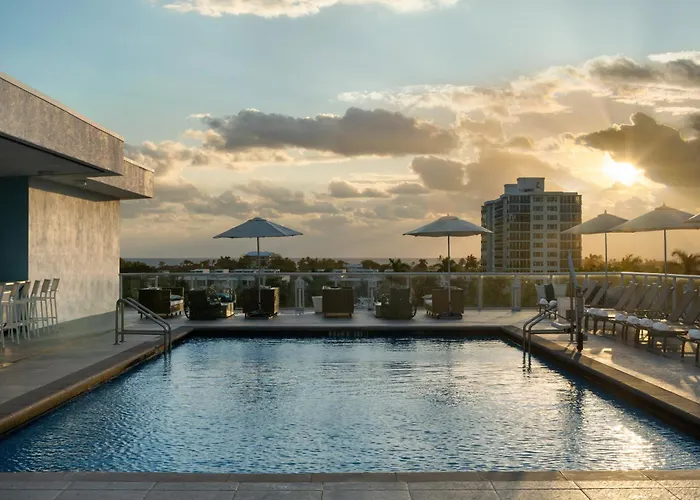 Courtyard By Marriott Delray Beach, a 3-star hotel with an 8.4/10 rating on Booking.com, features a rooftop pool with Delray's only pool bar, The Reef Bar, offering panoramic views. Guests can enjoy modern amenities including a well-equipped fitness center and on-site dining options at The Bistro.