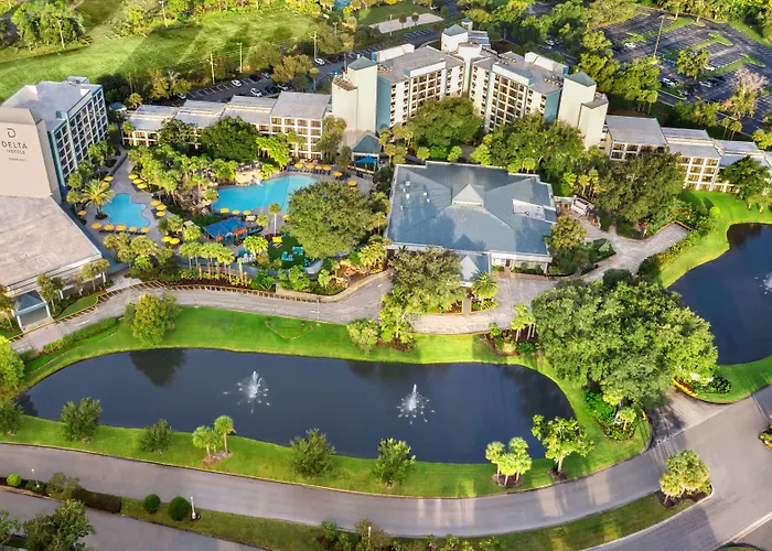 Delta Hotels By Marriott Orlando Celebration offers family-friendly accommodations with convenient access to major attractions like Walt Disney World(R) Resort and Universal Studios. The 3-star hotel features amenities such as two outdoor pools, a waterslide, and a fitness center.
