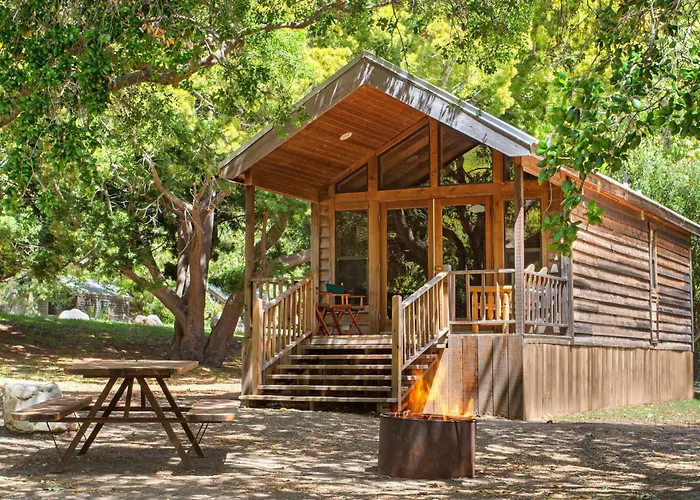El Capitan Canyon offers a unique resort camping experience with cedar cabins, safari tents, and yurts that fuse hotel comforts with the tranquility of the Gaviota Coast. This 4-star Capitan hotel features a heated pool, a market with organic groceries, and a variety of outdoor activities.