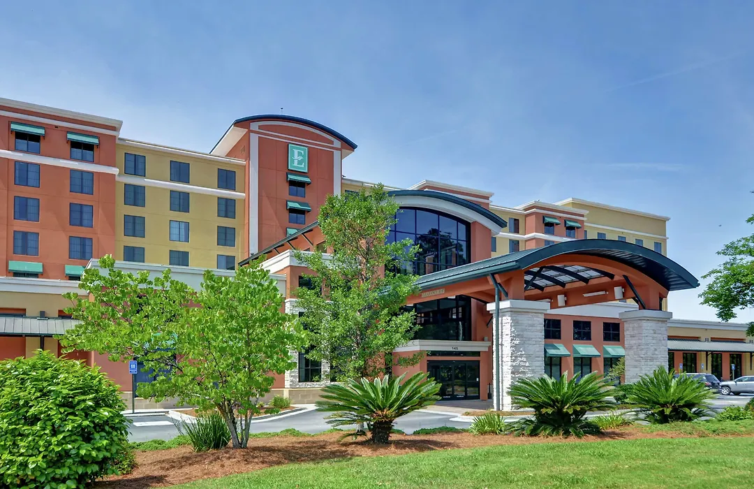Embassy Suites Savannah Airport, a 4-star hotel rated 8.2/10 on Booking.com, offers spacious all-suites accommodations, ideal for both business and leisure travelers. Guests benefit from amenities such as a free made-to-order breakfast and complimentary airport shuttle service.