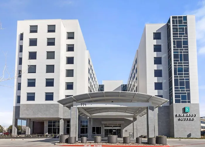 Embassy Suites By Hilton Irving Las Colinas is a 4-star hotel rated 9.2/10 on Booking.com, offering spacious suites and a complimentary made-to-order breakfast. This family-friendly hotel features amenities such as free WiFi and a 24-hour reception.