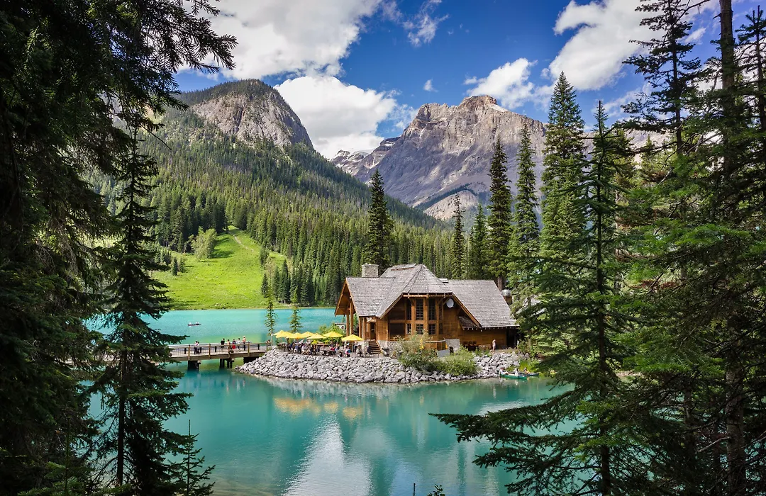 Emerald Lake Lodge, a 4-star field hotel rated 8.4/10 on Booking.com, features rustic accommodations on the shores of the pristine Emerald Lake. It offers award-winning dining and opportunities for outdoor exploration, providing an electronics-lite experience with limited Wi-Fi.