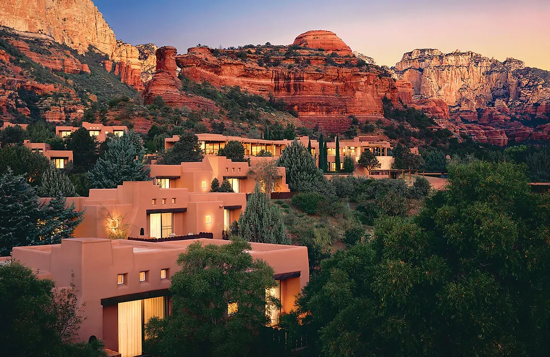 Enchantment Resort offers a luxurious getaway with captivating design amidst the stunning landscape of Sedona's red rocks. This 4-star resort features 218 casita guestrooms and suites, along with access to a practice park and an exclusive partnership with Mii amo spa for relaxation and rejuvenation. Rated 9.2/10 on Booking.com, it serves modern American cuisine and provides a range of outdoor adventures.
