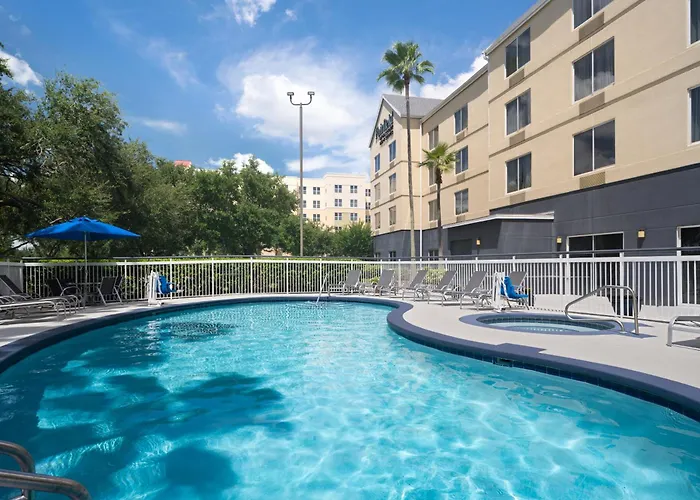 Fairfield Inn Orlando Airport is a 3-star hotel providing a blend of comfort, style, and affordability. Guests enjoy complimentary amenities including a hot breakfast and high-speed Wi-Fi. The hotel features an outdoor pool and a 24-hour fitness center.