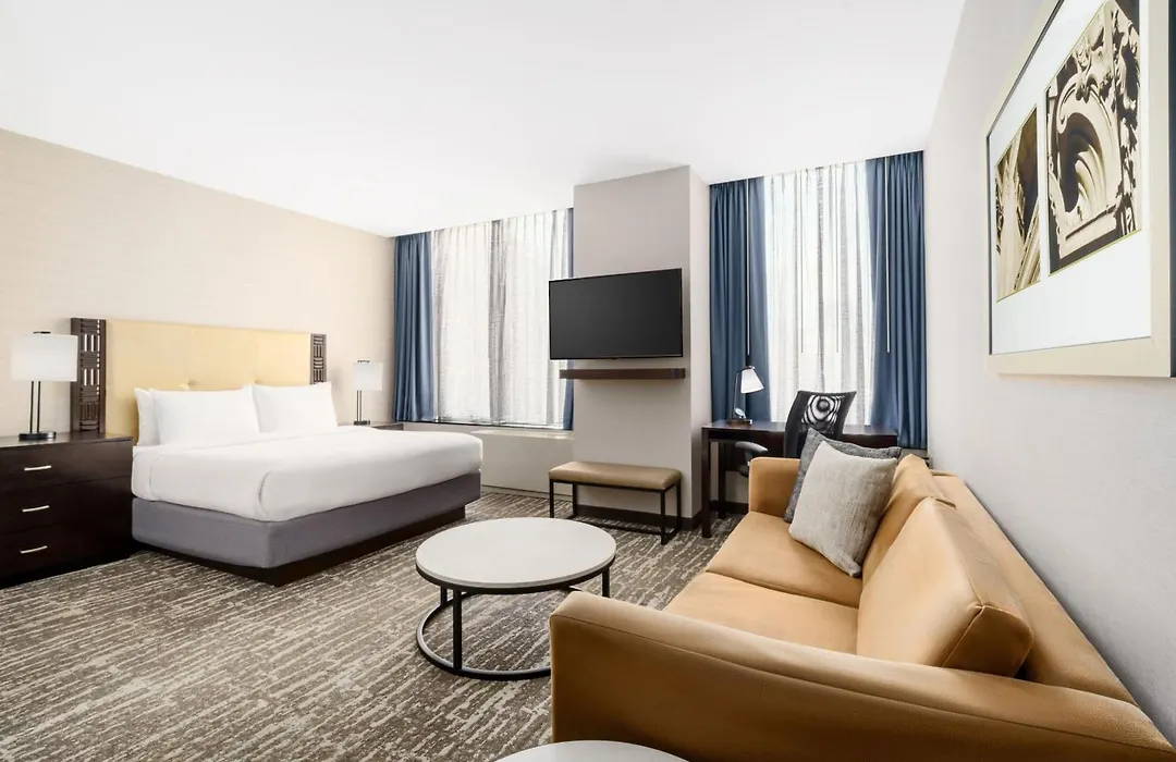Guests can break a sweat in the 24-hour fitness center or unwind in the outdoor courtyard, accessible throughout the year. The hotel also offers concierge services and meeting spaces, ideal for business travelers visiting the nearby Jacob Javits Convention Centre.