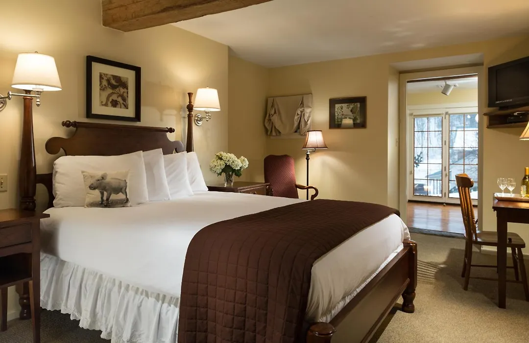 Guests at Glasbern can choose from rooms like the Upper or Lower Packhouse Suites, featuring an ultra-comfy king Sleep Number(R) bed and contemporary styling. Each suite includes a flat-screen TV, refrigerator, and a private patio. The hotel offers complimentary, made-to-order Chef's Breakfast for a fulfilling start to the day.