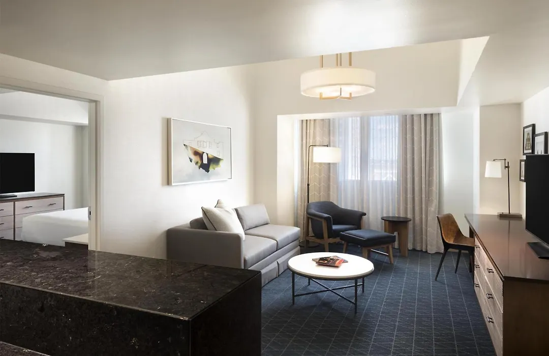 All 1003 rooms are equipped with flat-screen TVs, premium bedding, laptop-friendly workspaces, and air conditioning. Some rooms feature a seating area, while others have views of the San Antonio skyline. Guests can also enjoy complimentary Wi-Fi and access to the concierge-staffed Club Lounge, which offers a continental breakfast.