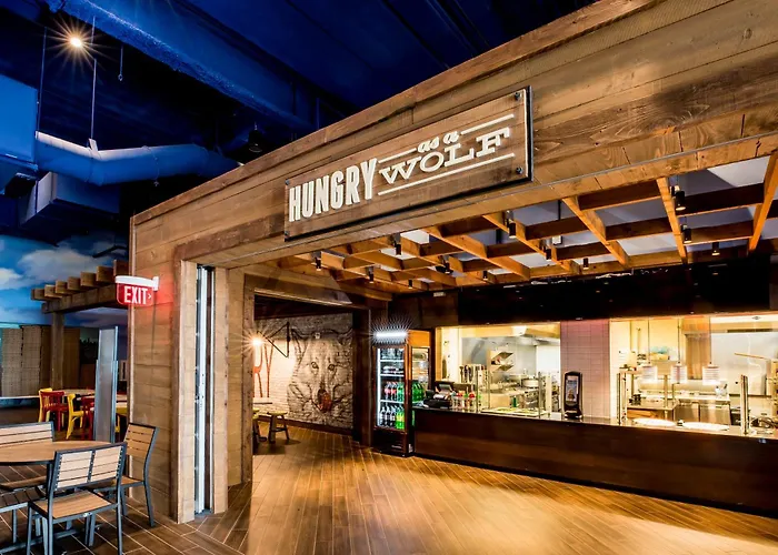 Casual dining options at Great Wolf Lodge Bloomington include Campfire Kitchen and The Watering Hole, which serve a range of dishes to satisfy any palate. Guests can also enjoy a complimentary breakfast that includes a variety of selections every morning.