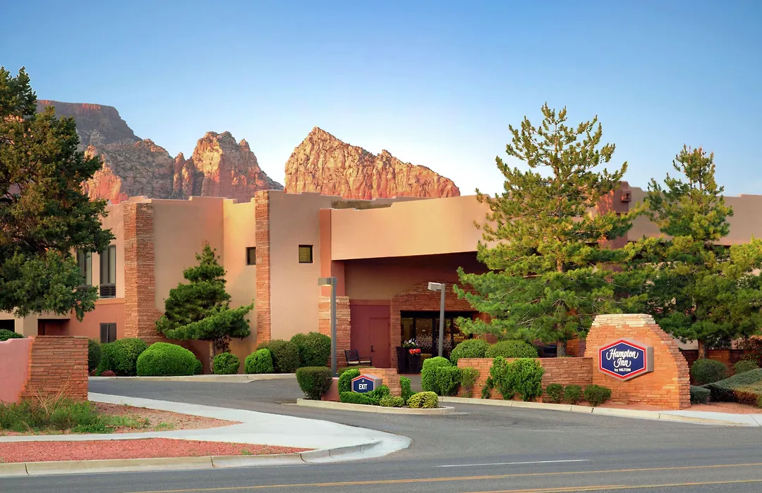 Hampton Inn Sedona is a 3-star hotel featuring comfortable guestrooms and an outdoor pool in a scenic area known for its red rock formations. Guests can start the day with a free hot breakfast buffet and enjoy additional amenities like a fitness center and concierge services.