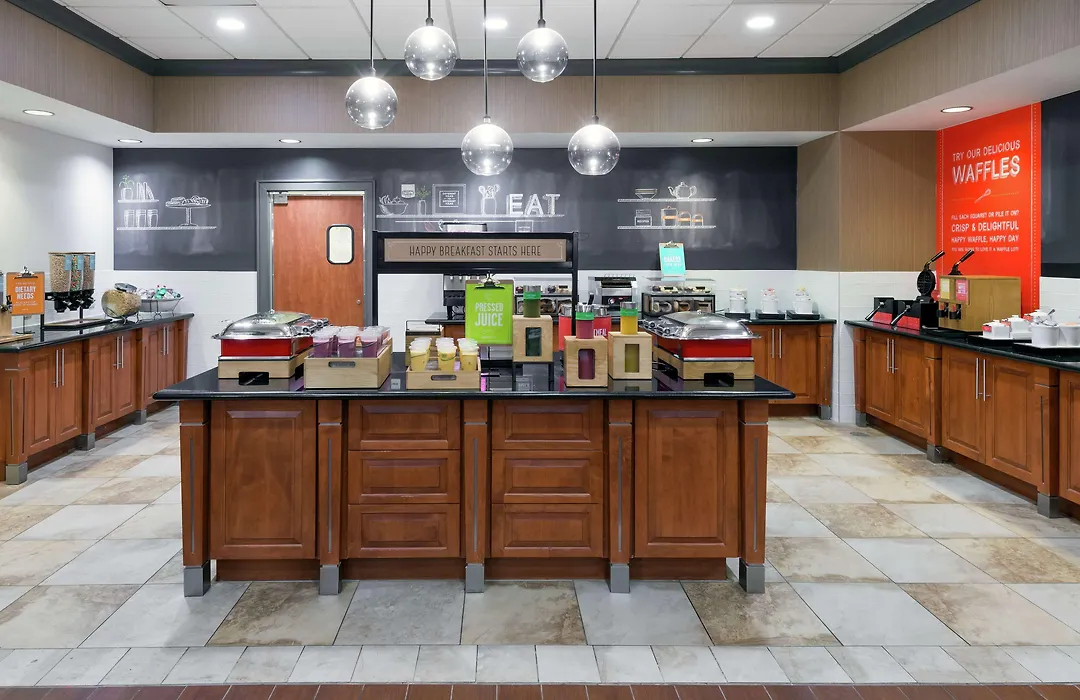 Dining options include a complimentary breakfast featuring coffee and DIY waffles. For additional meals, several nearby chain restaurants are within walking distance, including IHOP and Carrabba's, just 0.2 miles from the hotel.