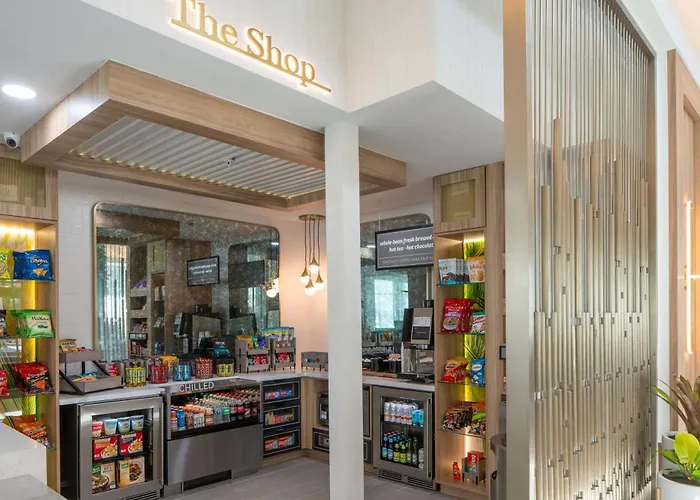 Dining options include the Great American Grill, offering cooked-to-order breakfast and evening room service. The Pavilion Pantry provides snacks and beverages including beer, wine, and liquor for those seeking convenience.