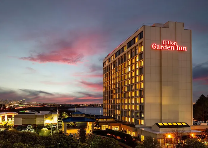 Hilton Garden Inn San Francisco/Oakland Bay Bridge is a 3-star waterfront hotel featuring modern amenities and spacious accommodations. Guests have access to an on-site restaurant, a fitness center, and a complimentary shuttle within a 2.5 miles radius. The hotel offers views of San Francisco Bay and is a short distance from key locations like UC Berkeley and popular attractions like Alcatraz Island.