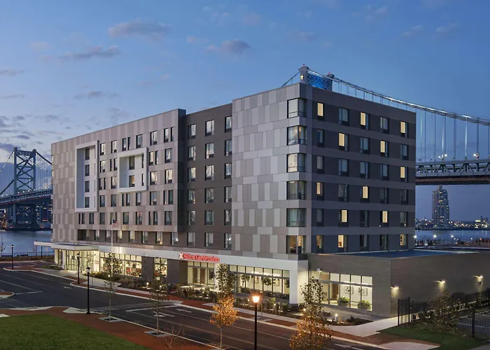 Hilton Garden Inn Camden Waterfront Philadelphia, a 3-star Camden hotel rated 8.5/10 on Booking.com, features air-conditioned rooms and a contemporary restaurant/bar with terrace views of the river. The hotel offers free WiFi, a fitness center, and a business center for guest use.