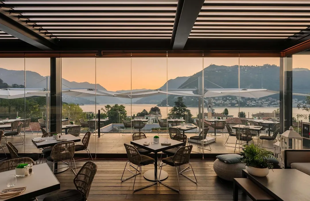 Dining options at Hilton Lake Como include a lobby restaurant serving Italian classics, along with Terrazza 241, the lake-view rooftop bar offering cocktails and light bites. An à la carte menu features international dishes and afternoon tea with savory and sweet treats.