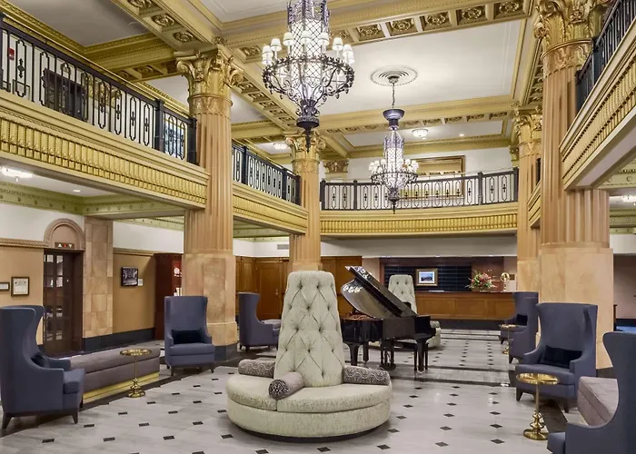 Hilton President Kansas City is a 4-star hotel featuring spacious accommodations and modern amenities in the historic Power & Light District. Guests can enjoy two restaurants, a bar, and a fitness center along with a business center and over 12000 square feet of meeting space. The hotel has an 8.6/10 rating on Booking.com.