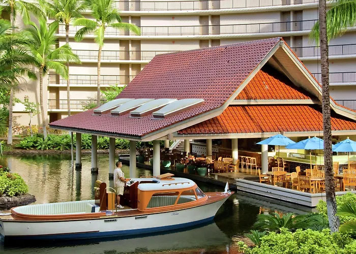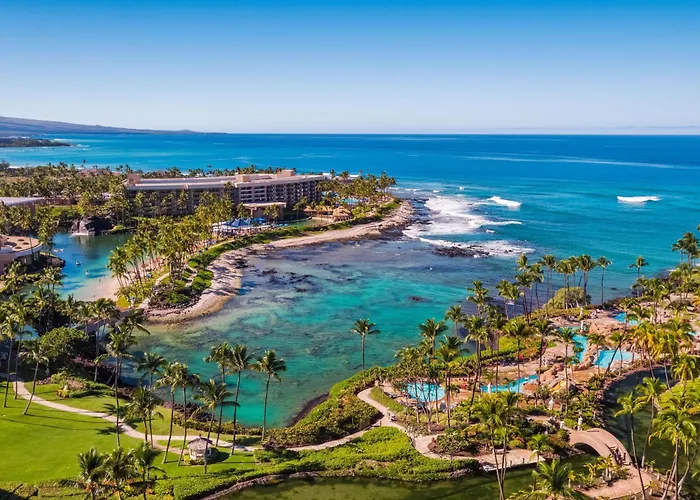 Hilton Waikoloa Village features a variety of room types and an extensive array of amenities, including three pools, an enormous dolphin lagoon, and a renowned spa. This 4-star Waikoloa hotel is suitable for families and offers activities and dining options for all ages.