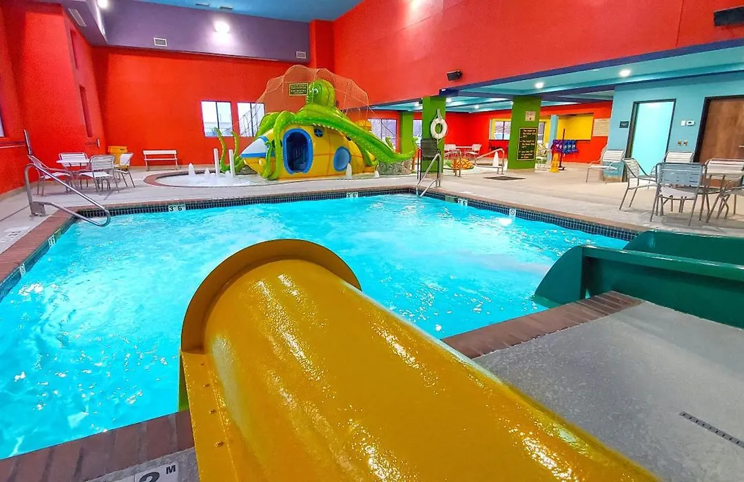 The hotel features an Indoor Water Center known as Captain's Lagoon, which includes two large slides and a hot tub. Guests can also enjoy a fitness center and an arcade for family fun.