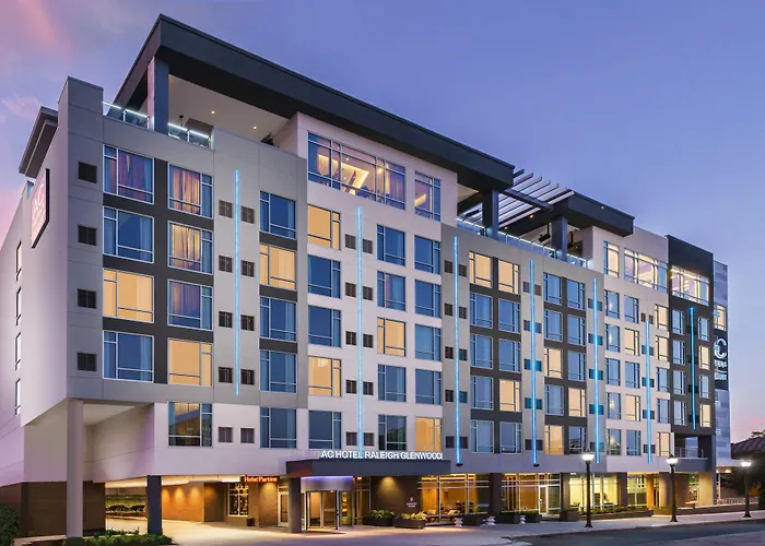 Ac Hotel By Marriott Raleigh Downtown is a 3.5-star hotel featuring a rooftop bar with city views. Guests can enjoy a coffee shop and modern amenities tailored for the business traveler.