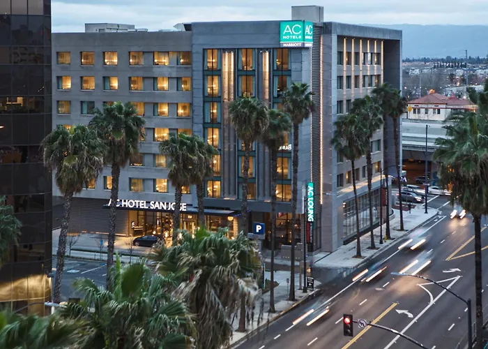 AC Hotel by Marriott San Jose Downtown offers modern accommodations with a rating of 8.7/10. This 3-star San Jose hotel features amenities such as an outdoor swimming pool, 24-hour front desk, and a fitness center.