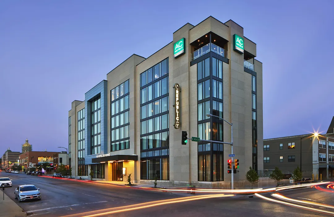 Ac Hotel By Marriott Des Moines East Village features modern accommodations with European design elements. Guests can enjoy amenities including a fitness center and complimentary Wi-Fi. The 3-star Des Moines hotel boasts a rooftop outdoor lounge with views of the downtown area.