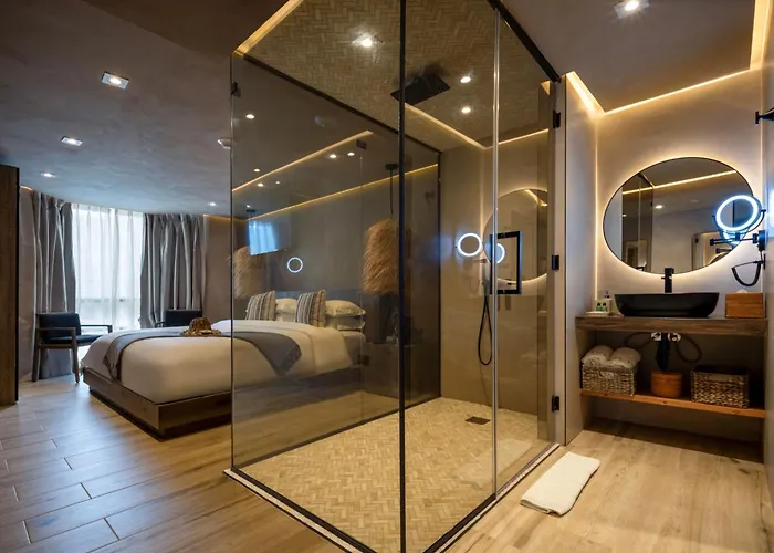 The 80 rooms at Aire De Olive feature amenities such as flat-screen TVs, minibars, and coffee machines. Guests can enjoy private balconies and select suites offer stunning ocean views.