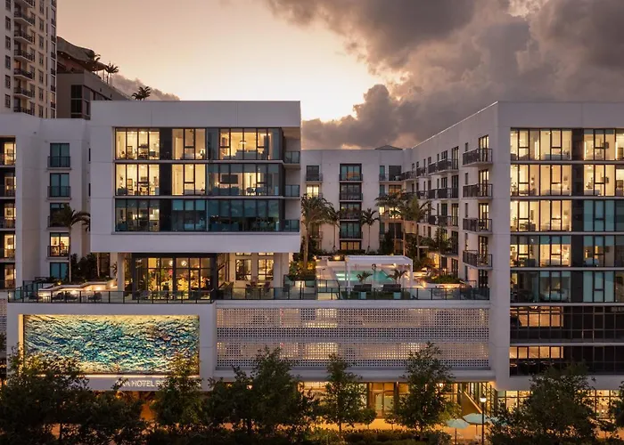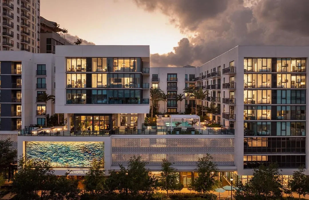 Aka West Palm is a luxurious 4-star hotel in Downtown West Palm Beach, featuring sophisticated studio and suite options with modern amenities. Guests can enjoy a chic outdoor swimming pool, Technogym fitness center, and on-site dining at The Blind Monk, enhancing their stay with curated lifestyle offerings.