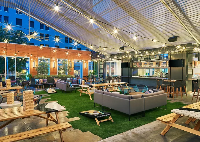 Aloft Austin Downtown is a trendy 3-star hotel with a Booking.com rating of 8.9/10, presenting modern amenities and a vibrant urban experience in the heart of downtown. This pet-friendly hotel features on-site dining options and a fully equipped gym.