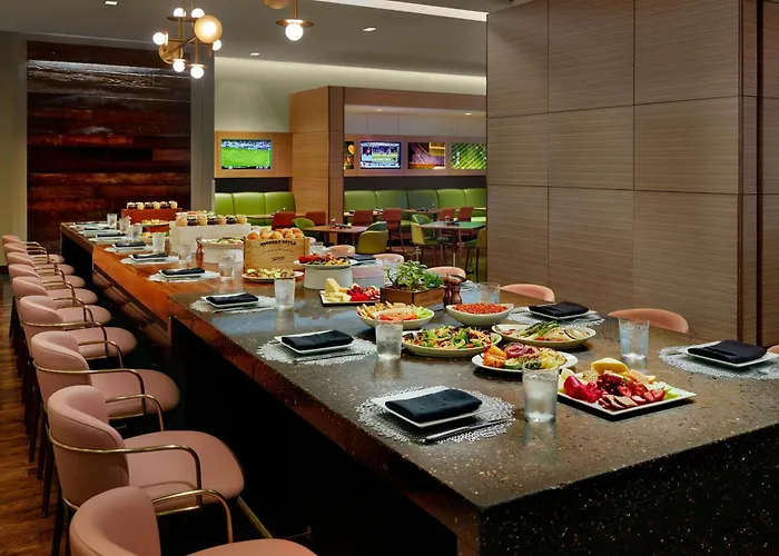 Guests can savor diverse dining options with Champions Beer Garden & Patio serving local craft brews and Southern comfort food. Terminal East coffee shop provides breakfast and lunch with Starbucks coffee, while In-Room Dining offers meals delivered directly to guest rooms.