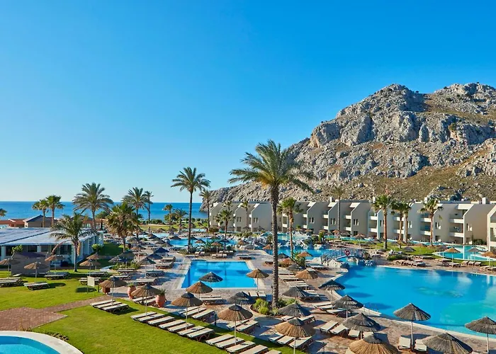 Atlantica Aegean Blue is a 5-star resort featuring a water park and direct beach access with crystal-clear waters. This family-friendly Kolymbia hotel offers diverse dining options, leisure activities, and spacious accommodations for all types of travelers.