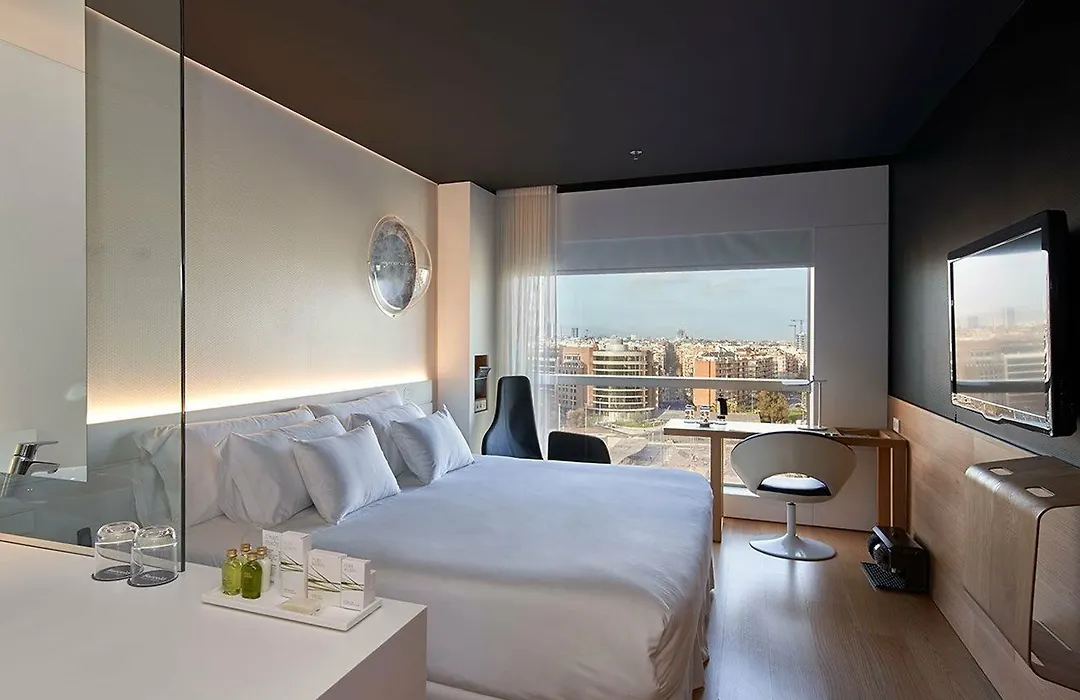 Rooms at Barcelo Sants include 312 Orbitals, 52 Stratosphere rooms, and 14 Orbital suites, all with impressive views of the city. Each room is equipped with an HD TV, docking stations for iPhones, and free Wi-Fi, creating a practical yet futuristic environment.