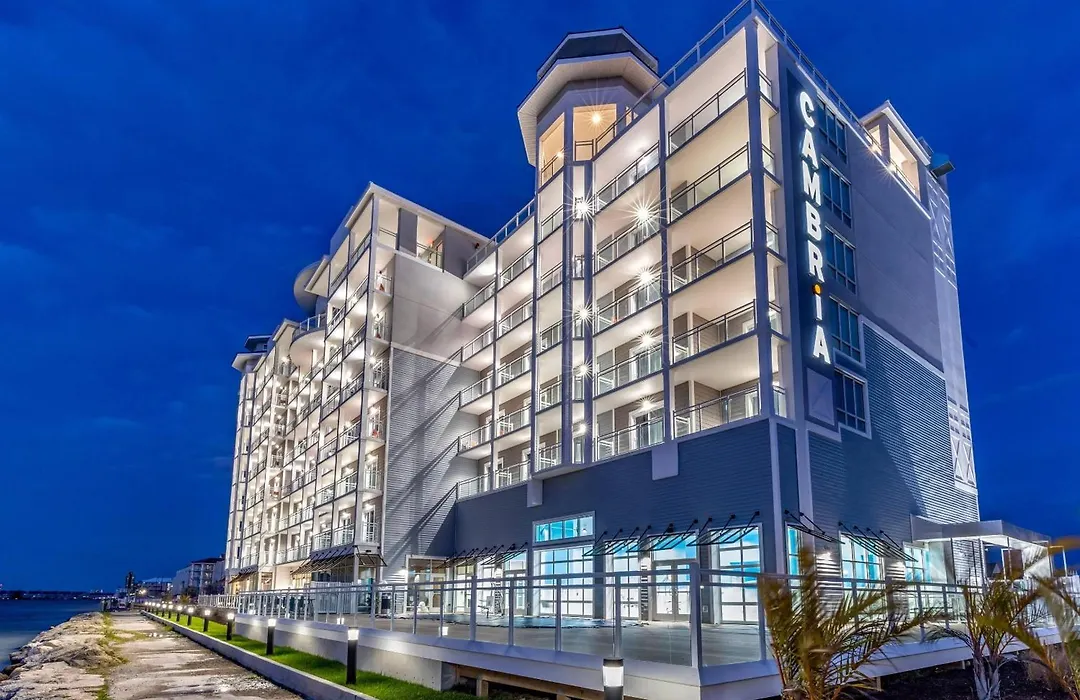 Cambria Hotel Ocean City - Bayfront offers a 3-star accommodation with a range of amenities including a restaurant, free parking, and a fitness center. It features a waterfront location with an indoor-outdoor infinity pool and rooftop bar with panoramic ocean views. The hotel has a Booking.com rating of 8.8/10.