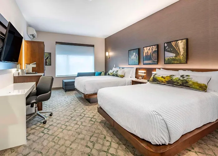 Rooms at Cambria Hotel Louisville Downtown-Whiskey Row include flat-screen TVs, private bathrooms, and seating areas. Spacious suites feature microwaves, ideal for longer stays, while all rooms provide complimentary toiletries and WiFi.