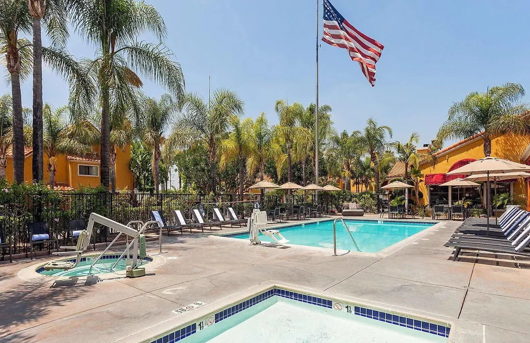 Clementine Hotel & Suites Anaheim, a family-friendly 3-star hotel with an 8.8/10 Booking.com rating, features spacious suites equipped with full kitchens. The hotel includes an outdoor pool, on-site playground, and offers a hot breakfast buffet.