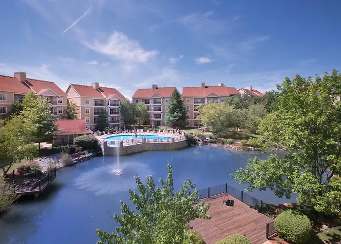 Club Wyndham Branson At The Meadows offers spacious one and two-bedroom vacation condos featuring full kitchens and private balconies. This family-friendly resort, rated 8.9/10 on Booking.com, provides six pools and various recreational activities, catering to guests seeking outdoor and indoor fun.