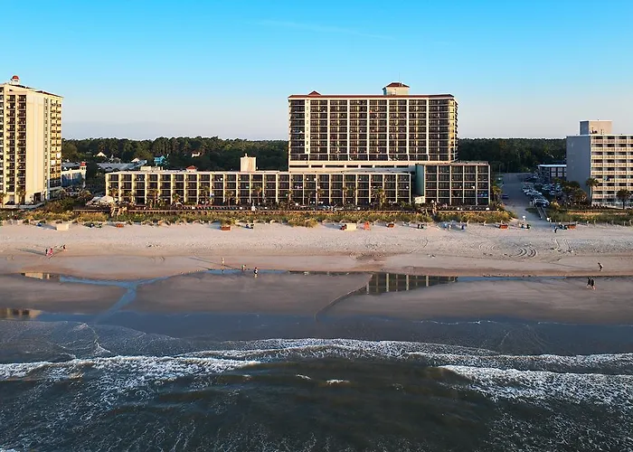 Compass Cove Resort combines family-friendly accommodations with extensive water attractions and beachfront access. This 3-star Myrtle Beach hotel has a variety of amenities including multiple pools, a tiki bar, and a coffee shop on-site.