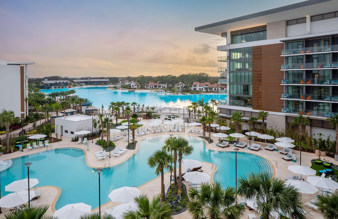 Conrad Orlando is a luxurious 5-star resort featuring a 20-acre tropical beach and an 8-acre crystalline lagoon with waterslides. Guests can enjoy exclusive access to Evermore Orlando Resort amenities and five unique dining options, including a high-end Mexican rooftop restaurant. This Orlando hotel boasts modern rooms and a range of on-site recreational facilities.