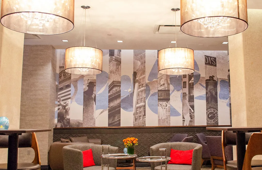 Distrikt Hotel New York City is a 5-minute walk from Times Square, the New York Times Building, and Theatre Row. The hotel's decor reflects various Manhattan districts, with engravings depicting the city behind the front desk. Nearby, guests can find essential transportation options, including subway and bus services.