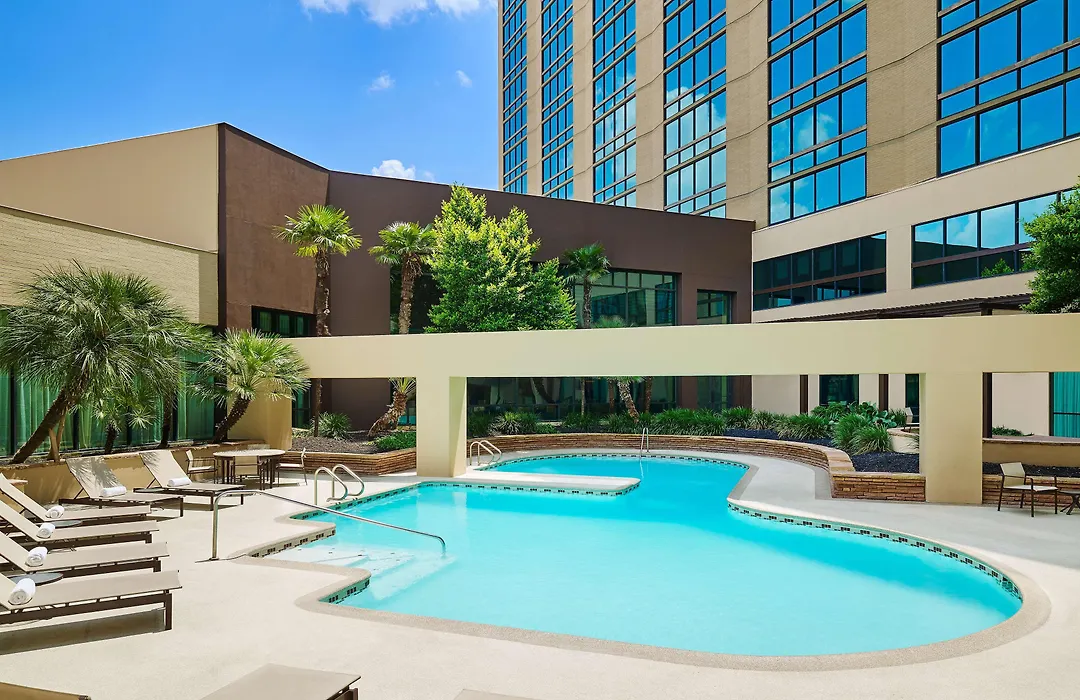 Doubletree By Hilton San Antonio Airport is a 3-star hotel offering comfortable accommodation with modern amenities and facilities. Key features include a beautifully landscaped outdoor heated pool, a 24-hour fitness center, and a variety of dining options including Asado Seafood & Grill Restaurant. The hotel is known for its convenient location near shopping and entertainment areas.