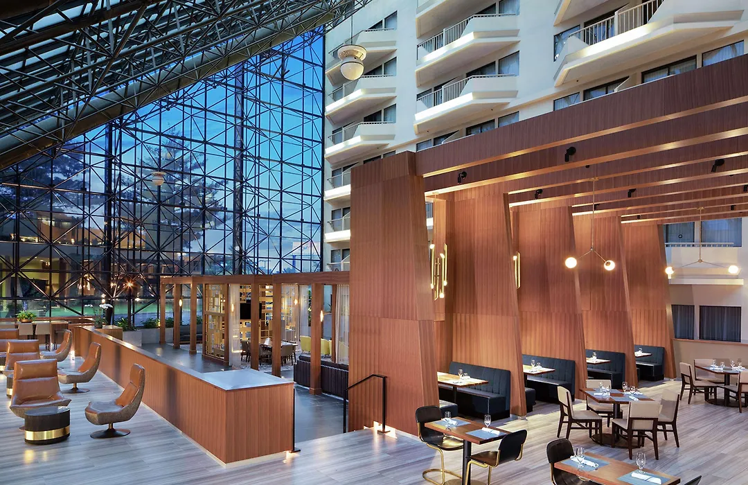 Dining options include Bistro 128, which serves a buffet breakfast featuring hot and cold cereals, fresh fruit, and specialty breads. The casual hotel bar offers a light menu, cocktails, and a Starbucks coffee bar for snacks and beverages.